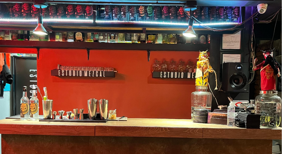 Pequeña Mezcalería de Barrio, comida rica, destilados Mexas.